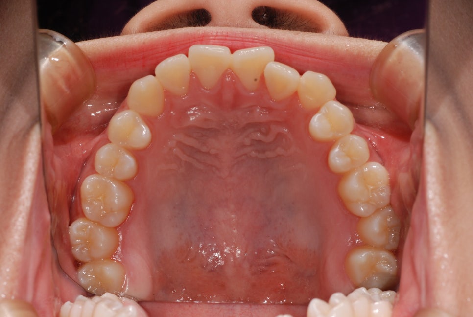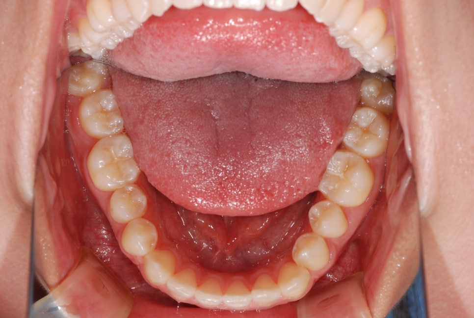 아래 앞니 보다 뒤에 위치하게 되는데,