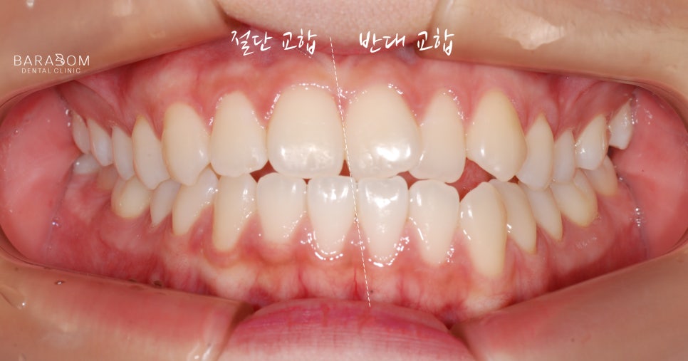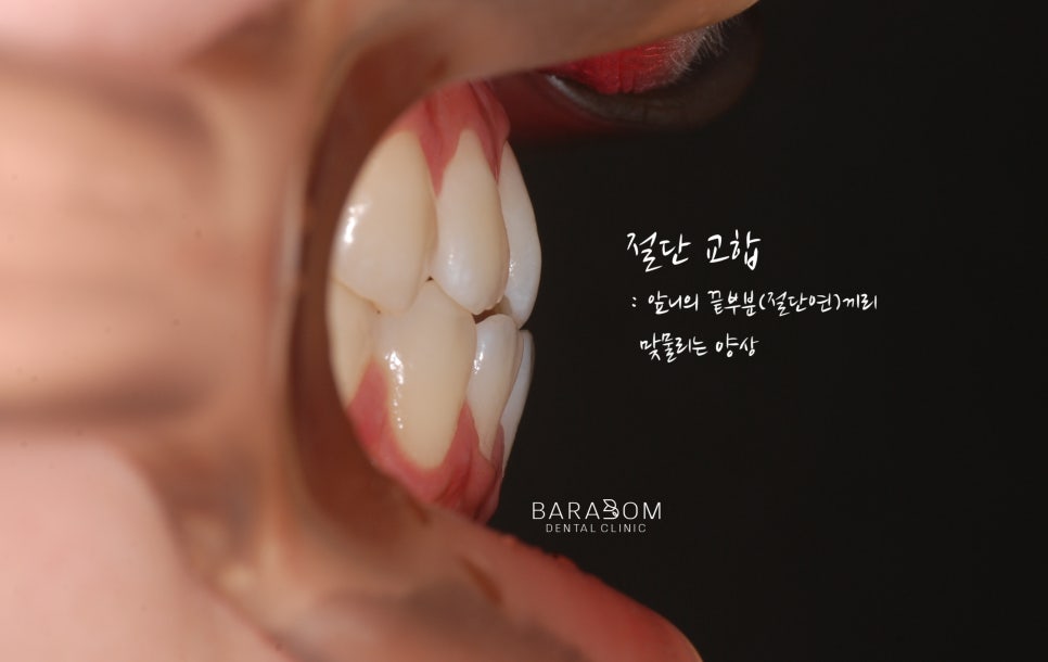 2️⃣우측은 앞니의 끝부분 즉 절단연끼리