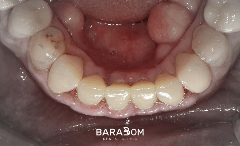 앞서 설명드린 것처럼 교합고경을 재건할 때, 여러 사항을 고려하여 신중을 기여해야 됩니다. 하악 구치부 크라운 수복을 진행한 결과, 앞니쪽에 3mm 가량의 공간이 형성되었습니다.
